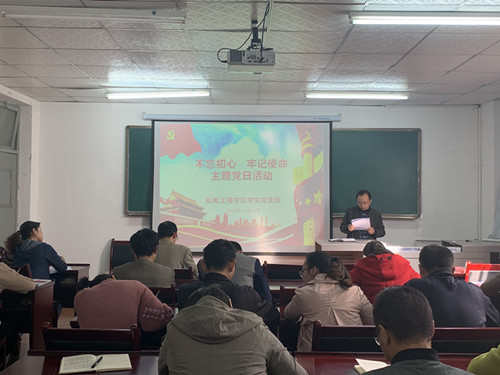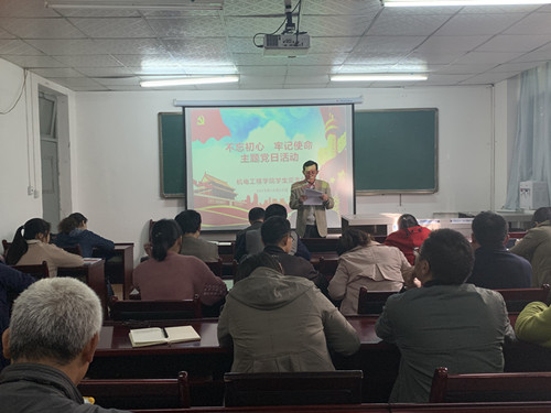 2019年10月16日下午,太阳成集团tyc234cc主页党总支组织全体党员,在朝阳校区一号教学楼203教室举办“不忘初心,牢记使命”主题党日活动。