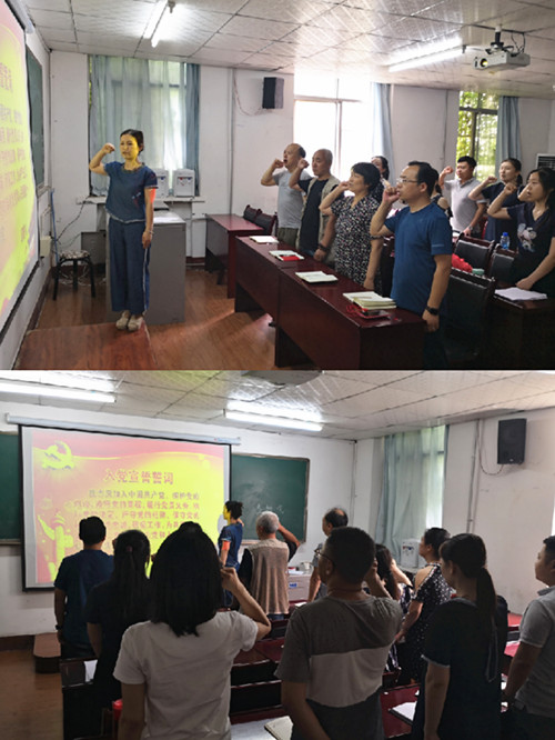 7月3日下午1点30分,太阳成集团tyc234cc主页党总支在教学楼203室,开展了主题党日活动,活动由纪检委员、员工支部书记朱江同志主持,全体党员参加。