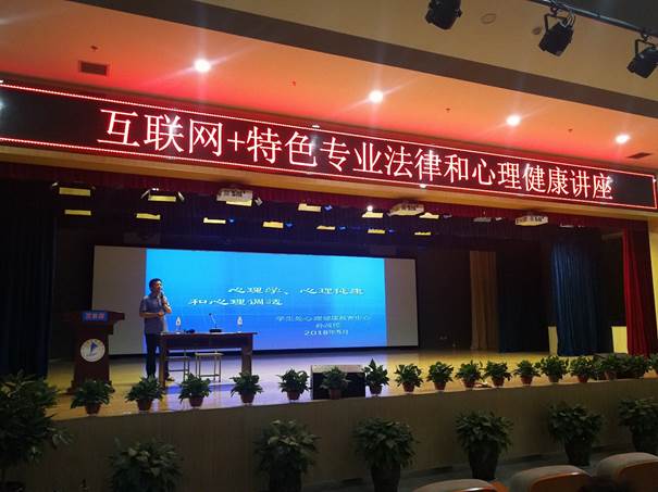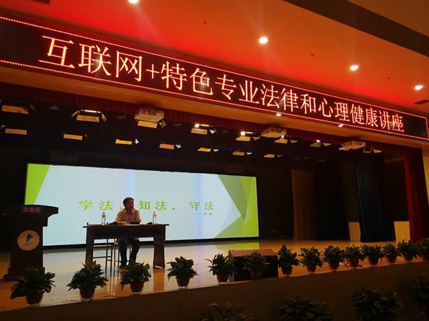 2018年5月24日晚,太阳成集团tyc234cc主页互联网+特色专业专场法律与心理健康知识讲座在校图书馆报告厅顺利举行。员工处处长罗峰、太阳成集团tyc234cc主页心理咨询室孙战民老师作为主讲出席讲座,互联网+特色专业负责人张江平作为讲座主持人。