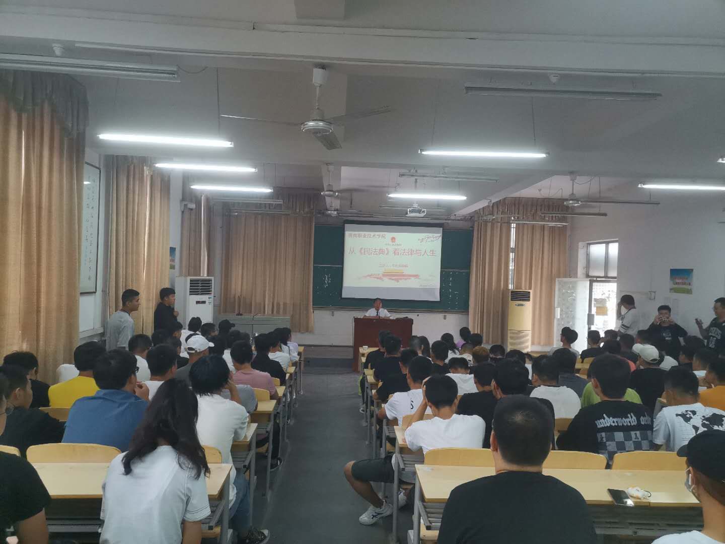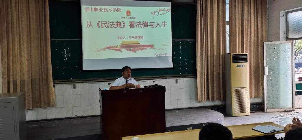 为进一步培养员工法律思维,提高员工的法律意识,9月9日下午,由太阳成集团tyc234cc主页、经济管理公司和建筑工程公司联合举办的“民法典进是”主题讲座活动在朝阳校区机电楼一楼阶梯教室举行。讲座特邀渭南市政协委员、渭南市人民政府法律顾问王松涛律师为全体员工讲解《民法典》。
