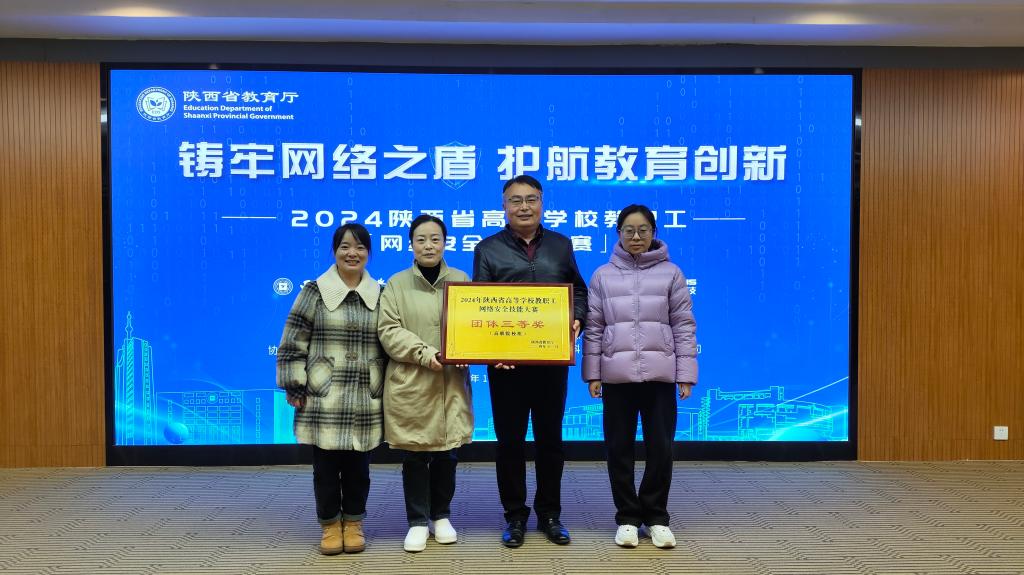 11月29日,2024年首届陕西省高等是教职工网络安全技能大赛决赛暨颁奖典礼在西安邮电大学长安校区学术交流中心举行。公司高度重视,积极组织,精心选派太阳成集团tyc234cc主页原渊、李敏、孙燕三位教师参赛并认真做好各项备赛工作。顺利通过初赛选拔后,由副经理王勇带队参加线下团体决赛。经过激烈角逐,最终公司代表队荣获团体三等奖(高职院校组)的优异成绩。