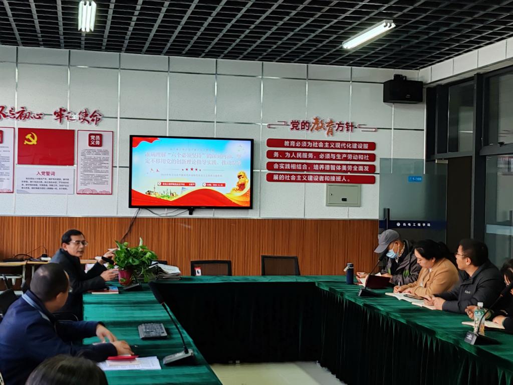 为深入贯彻落实“三会一课”制度,11月22日下午14:00在机电一楼会议室,王医平书记以《准确理解“六个必须坚持”的深刻内涵,坚持不移用党的创新理论指导实践、推动发展》为主题,给全体党员讲党课。