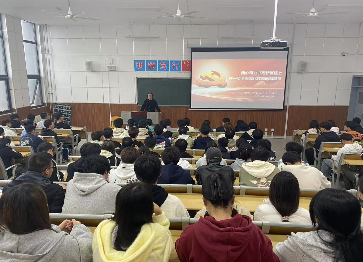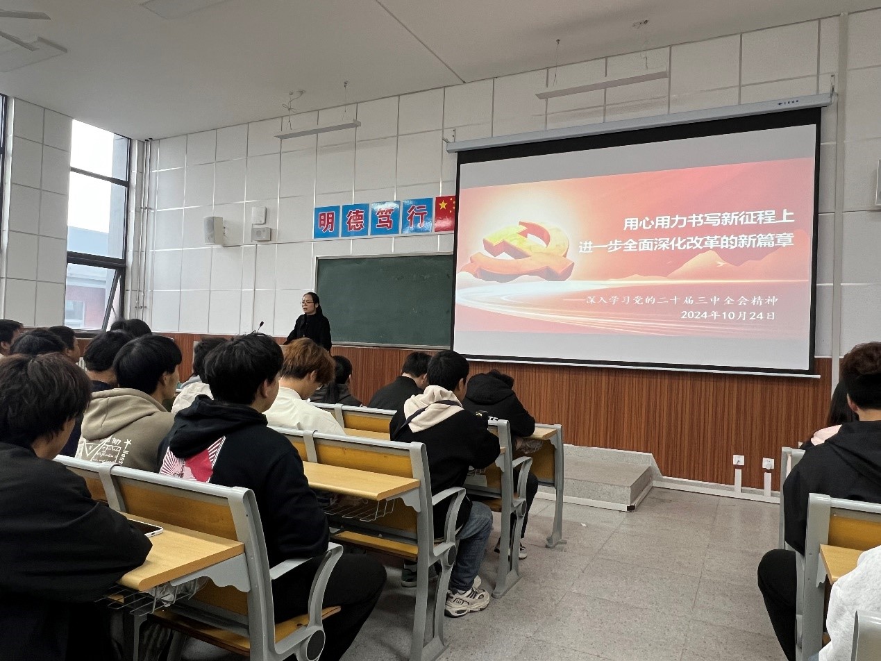 为深入学习贯彻党的二十届三中全会精神,10月24日,太阳成集团tyc234cc主页理论宣讲员查彩云老师在综合楼302教室为太阳成集团tyc234cc主页入党积极分子、团学干部、班干部等一百余名员工开展主题为《用心用力书写新征程上进一步全面深化改革的新篇章》的报告。