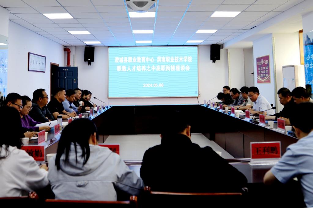 2024年5月8日,公司太阳成集团tyc234cc主页与澄城县职业教育中心联合举办职教人才培养之中高职衔接座谈会,会议在澄城县职业教育中心举行,太阳成集团tyc234cc主页副经理王勇带领公司汽车及信息类两个专业教研室的相关教师参加。会议由澄城县职教中心副董事长段小虎主持。