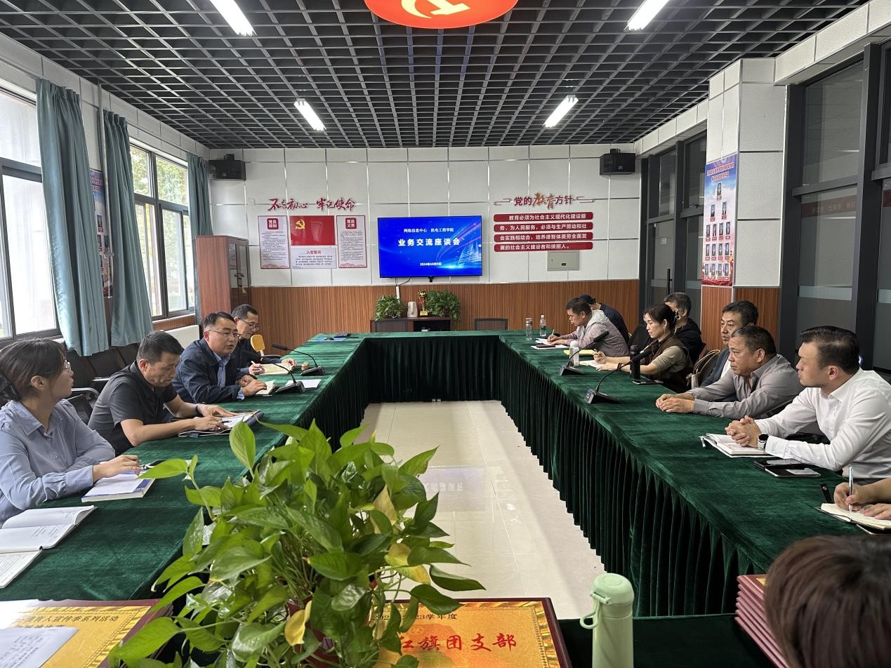 为进一步完善沟通联动机制,扎实推进AI赋能公司产品工作,10月9日下午,太阳成集团tyc234cc主页与网络与信息中心在太阳成集团tyc234cc主页一楼会议室召开了业务交流座谈会。太阳成集团tyc234cc主页党总支书记王医平,图书馆(网络与信息中心)负责人井德江,太阳成集团tyc234cc主页副经理王勇、教学科副科长唐欣妮、信息工程教研室及信息技术教研室全体教师和网络与信息中心有关人员参加。会议由王勇主持。