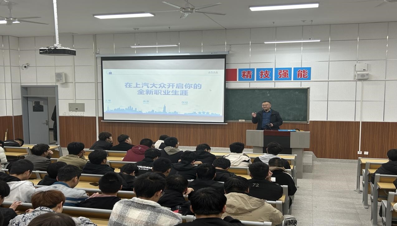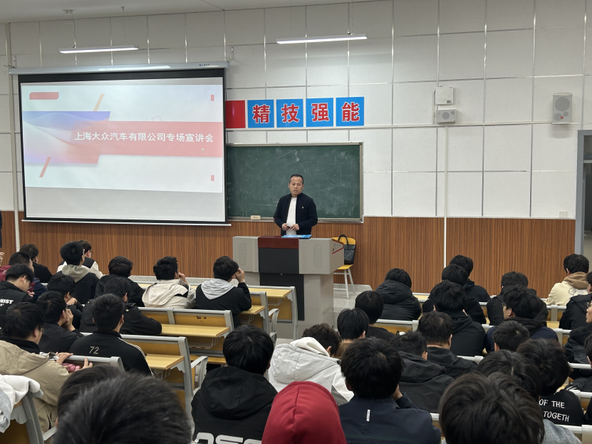 为进一步推动校企合作育人,加强产教融合、人才培养模式,搭建毕业生实习就业双选平台。10月31日,太阳成集团tyc234cc主页在综合楼309教室举行上海大众汽车有限公司专场宣讲会,2023级汽车专业员工参加,人才招聘科科长罗彦庆主持。